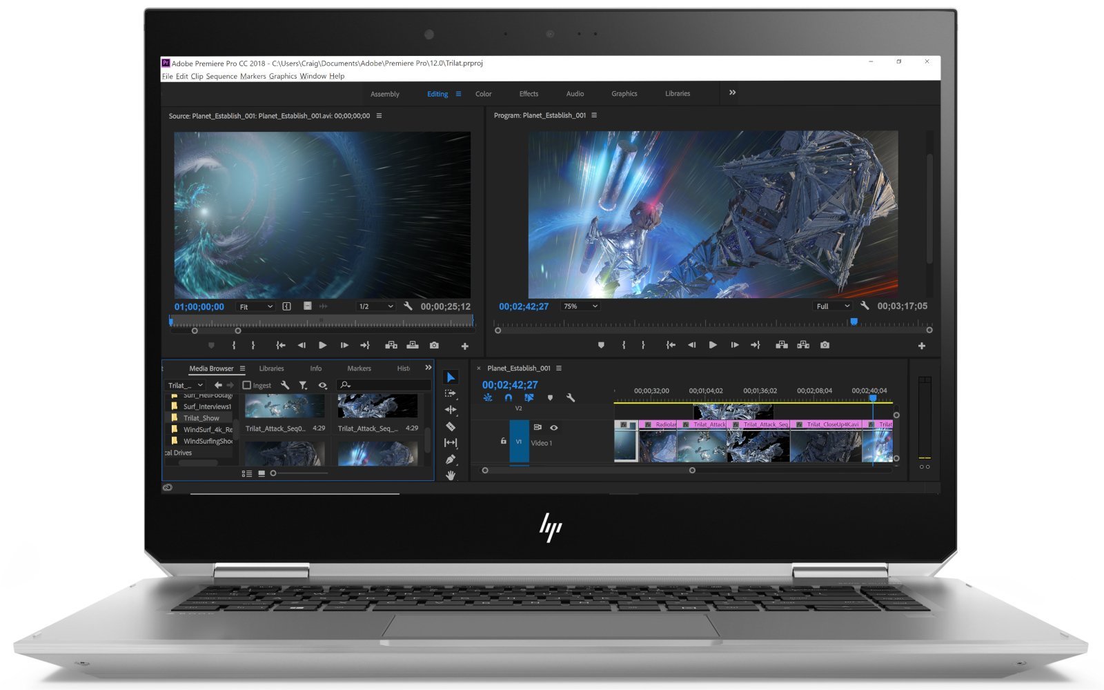 HP ZBook Studio x360 G5 to udane połączenie mobilne stacji roboczej, która dzięki zawiasom 360 może pracować także jako tablet. Dzięki zastosowaniu 8. generacji procesorów Intel (pełnonapięciowe - H, w tym także z rodziny Xeon) w połączeniu z profesjonalnymi kartami graficznymi Nvidia P1000 zapewnia najwyższą wydajność. Całość udało się inżynierom HP zamknąć w nowoczesnej obudowie o wadze mniejszej niż 2.5 kg.