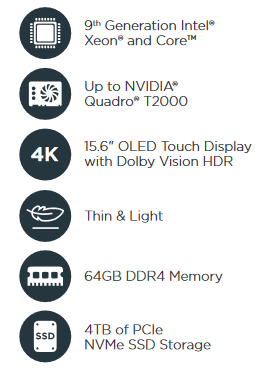 - Intel Xeon E-2276M: 6 rdzeni, 12 wątków; taktowanie bazowe 2.8Ghz, maksymalne 4.7Ghz; Cache 12MB; Intel UHD Graphics P630