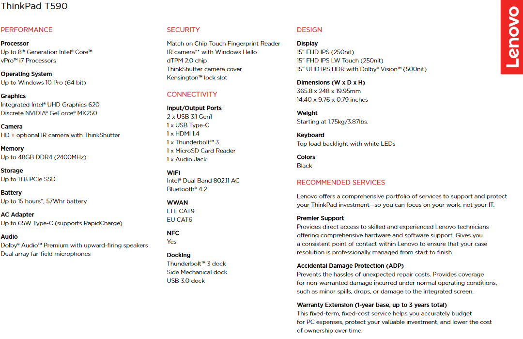 Specyfikacja techniczna serii Lenovo ThinkPad T590: