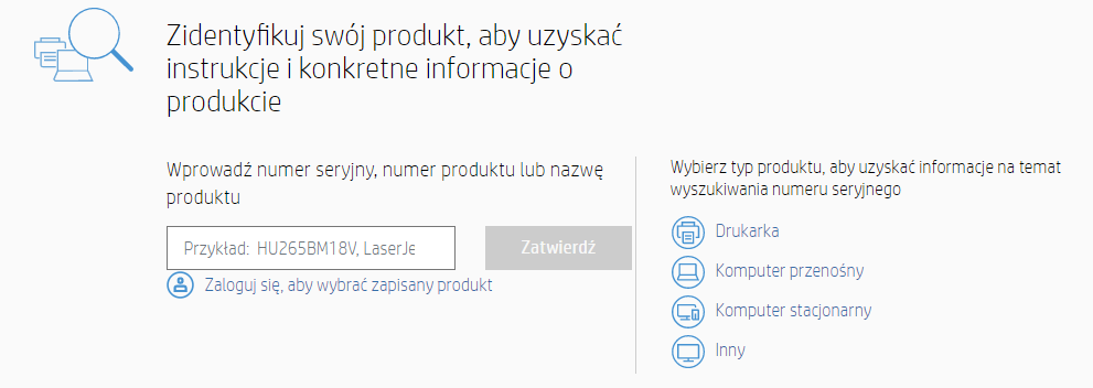 Następnie w poniższej sekcji należy wpisać SN urządzenia co do którego chcemy uzyskać wsparcie firmy HP: