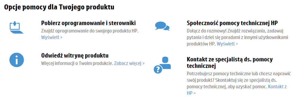 W celu uzyskania wsparcia od firmy HP należy udać się na stronę: https://support.hp.com/pl-pl