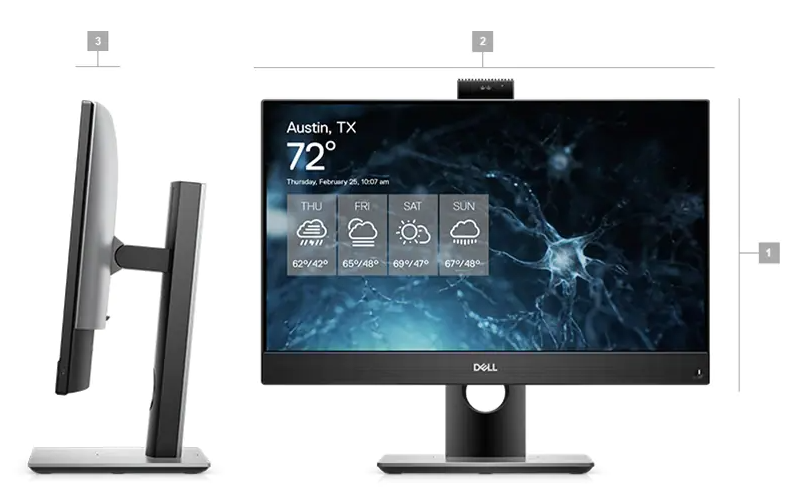 Komputery AiO Dell Optiplex 7490 to nowoczesne i dostosowane do potrzeb użytkownika biznesowego rozwiązania PC All-In-One z matrycą 23,8-cala (komputer zintegrowany w monitorze). Wyposażone są w procesory firmy Intel z rodziny Core 10. jak i 11. generacji. Pamięć RAM dostępna jest w dwóch bankach SODIMM 2666MHz o pojemności do 32GB (2x 16GB). Magazynem danych są dyski SSD M.2 NVMe PCIe o pojemności do 2TB oraz dyski SSD/HDD 2,5-cala SATA3 o pojemności do 4TB. Dostępne są konfiguracje z dedykowanym układem graficznym nVidia GeForce GTX 1650Ti. Za łączność odpowiadają takie układy jak: Intel Wi-Fi 6 AX201, Dual-band 2x2 802.11ax with MU-MIMO + Bluetooth 5.1. Wbudowany zasilacz (w zależności od konfiguracji) może mieć paramtery: 160W 85% 80 PLUS Bronze lub 220W 92%80 PLUS Platinum. System operacyjnym jest Windows 10 Pro z opcją aktualizacji do Windows 11.