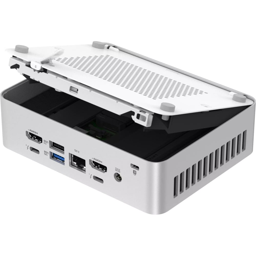Komputer waży 0,60 kg. Podzespoły modelu zostały zainstalowane w srebrnej obudowie typu Mini Desktop.