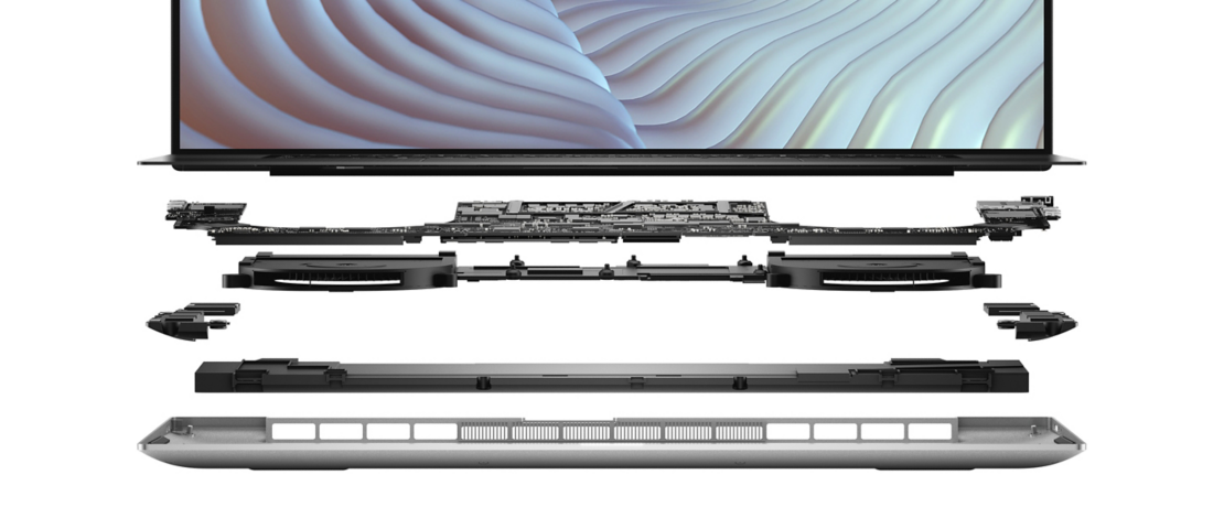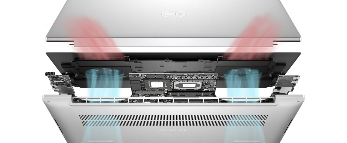 Zaawansowana konstrukcja termiczna: Dell XPS 17 9700 zapewnia niespotykaną wydajność w niewiarygodnie cienkiej obudowie. Opcjonalna dyskretna grafika zawiera unikalne podwójne wentylatory wylotowe, które zwiększają przepływ powietrza o około 30% i napędzają chłodzenie w obu kierunkach, co skutkuje większym przepływem powietrza i poprawą temperatur. Opracowanie przez Dell wentylatora z podwójnym wyjściem doprowadziło do wielu nierozstrzygniętych wniosków patentowych i co najmniej jednego wydanego patentu. Masywna komora parowa rozciąga się na całej szerokości laptopa, zapewniając jeszcze większą zdolność rozpraszania ciepła, aby utrzymać chłodzenie laptopa i osiągnąć wyższą moc turbo.