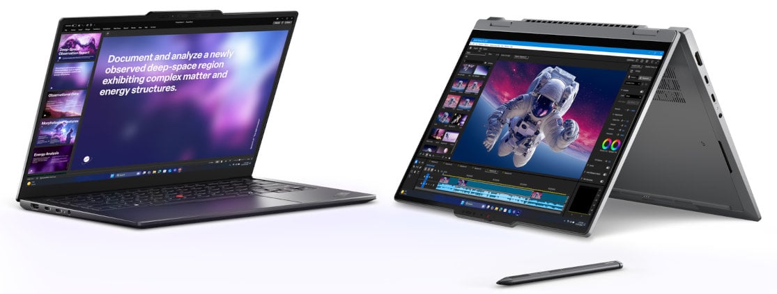 Lenovo ThinkPad X1 2-in-1 Gen 11 to kolejna generacja prestiżowej biznesowej hybrydy, która obok ThinkPada X1 Carbon Gen 14 jest najbardziej mobilnym i zaawansowanym urządzeniem do pracy. W nowej odsłonie tego urządzenia 2w1 użyto nowych wydajnych i energooszczędnych procesorów Intel Core Ultra X7 300. Specyfikację dopełnia do 64 GB RAM LPDDR5X 9600 MT/s, dysk SSD NVMe PCIe Gen 5. Zintegrowany układ graficzny Intel Arc B390 zapewnia niespotykaną dotąd wydajność graficzną w tak kompaktowym urządzeniu przy jednoczesnej oszczędności energii i wysokiej kultury pracy. Zintegrowany układ NPU Intel AI Boost zapewnia nawet do 50 TOPSów mocy obliczeniowej w aplikacjach korzystających ze Sztucznej Inteligencji.