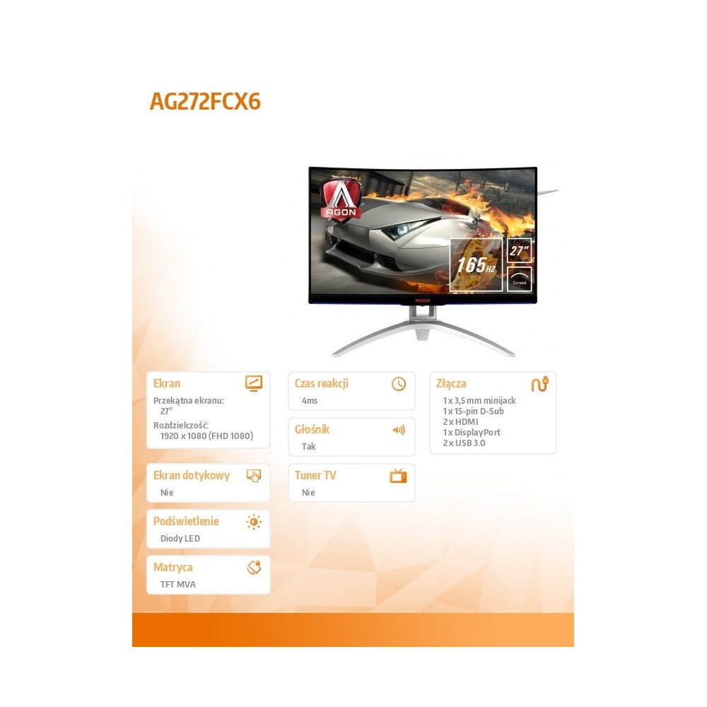 27", 1920x1080 (Full HD), 165Hz, zakrzywiony, MVA, FreeSync, 4 ms, pivot, Czarno-srebrny
