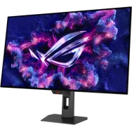 Monitor komputerowy ASUS ROG Strix OLED XG32UCWMG 90LM0BW0-B01371 to jeden z cieszących się coraz większą popularnością na polskim rynku produktów ASUS. 31,5-calowy ekran wyświetla obraz w rozdzielczości maksymalnej 4K (3840x2160 pikseli). Oznacza to, że obraz jest wyświetlany w proporcjach 16:9. Ważną cechą modelu jest pokrycie ekranu. Do wyświetlania obrazu służy matryca WOLED zapewniająca doskonały obraz. Producent deklaruje jasność matrycy na poziomie 1300 cd/m². Częstotliwość odświeżania matrycy przy optymalnej rozdzielczości wynosi 240 Hz. Kąty widzenia w pionie i poziomie wynoszą odpowiednio 178 stopni i 178 stopni. Rozmiar piksela wynosi 0,182 mm. Urządzenie oferuje jedno gniazdo DisplayPort. Waga monitora wynosi 7,30 kilograma. Produkt jest dostępny w obudowie koloru czarnego.