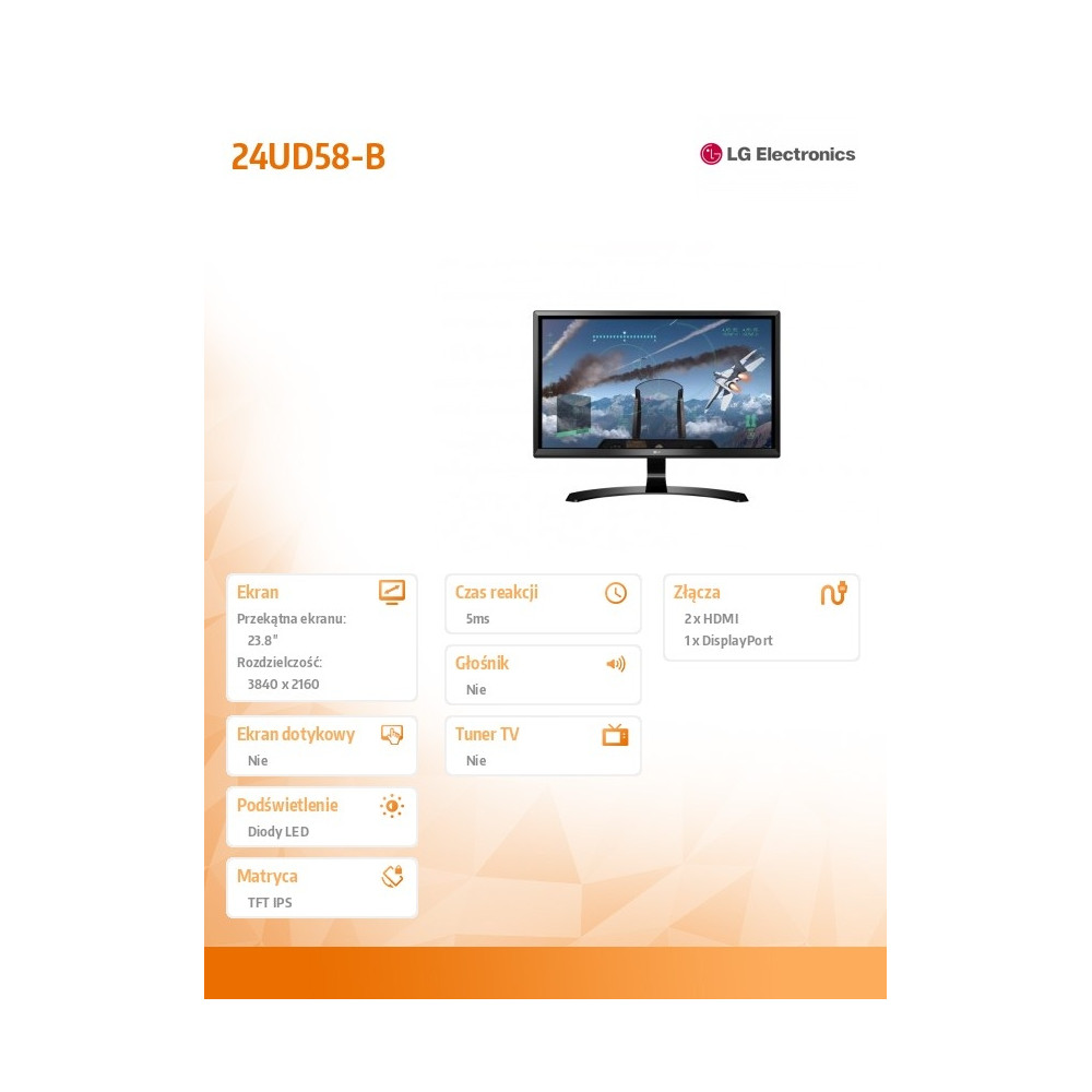 LG 24UD58-B wyprodukowany przez firmę LG jest propozycją adresowaną przede wszystkim do odbiorców biznesowych.