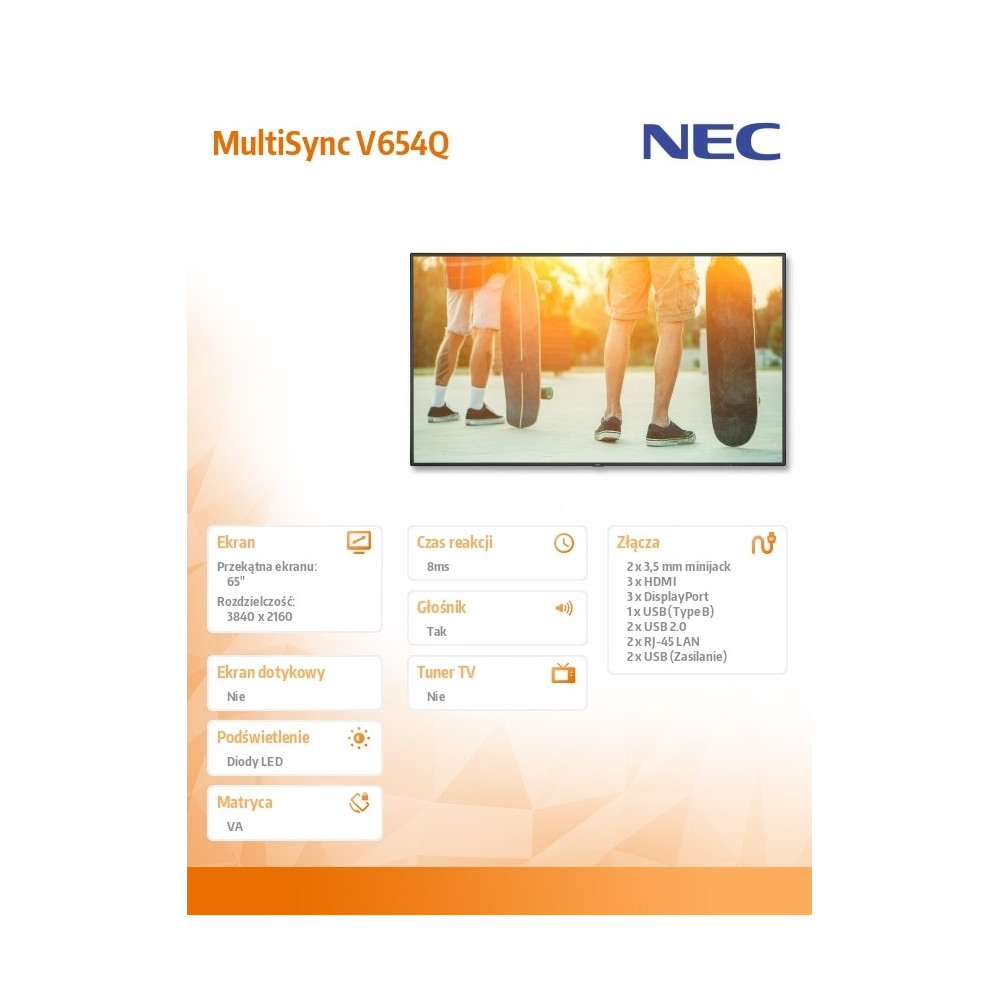 Zdjęcie produktu Monitor NEC MultiSync V654Q 60004036 - 64,6"/3840x2160 (4K)/85Hz/VA/8 ms/Czarny