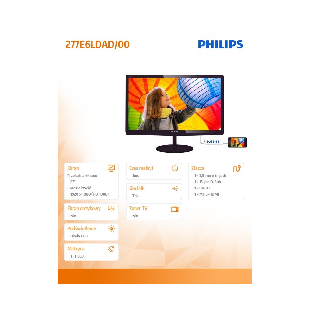 Obraz jest wyświetlany na 27-calowym ekranie w rozdzielczości natywnej 1920x1080 (Full HD), czyli w proporcjach 16:9. Użytkownicy zapewne zwrócą uwagę na pokrycie ekranu. Kąty widzenia w pionie i poziomie wynoszą odpowiednio 160 stopni i 170 stopni. Częstotliwość odświeżania matrycy przy optymalnej rozdzielczości wynosi 75 Hz. Czas reakcji matrycy wynosi 1 ms, a piksel ma rozmiar 0,311 x 0,311 mm. Do podłączania urządzeń peryferyjnych służą następujące porty: jedno gniazdo VGA (D-Sub), jedno gniazdo HDMI, 0 x USB-C, jedno gniazdo DVI oraz jedno gniazdo 3,5 mm minijack.