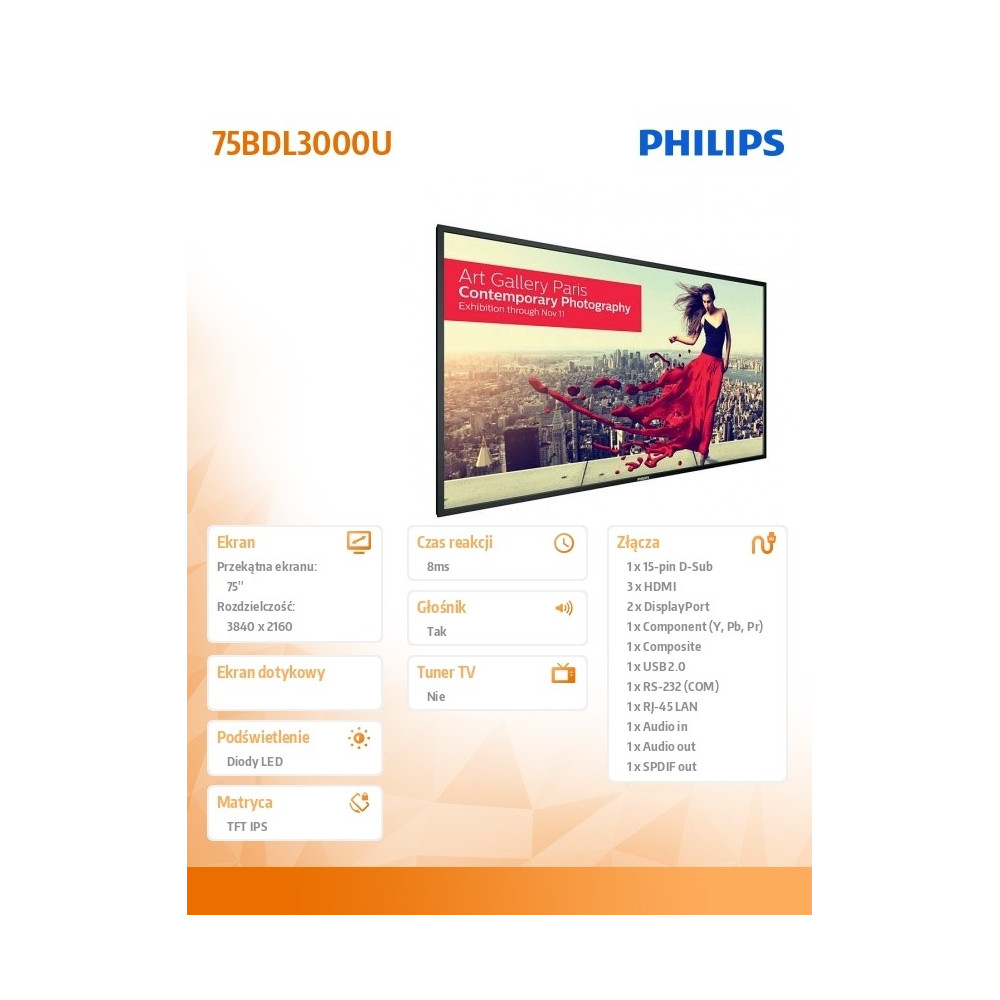 Philips 75BDL3000U Signage Solutions U-Line 75BDL3000U/00 - Specyfikacja