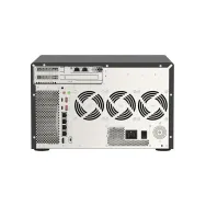 Serwer NAS obsługuje 12 dysków. Użytkownik serwera plików ma także do dyspozycji 2 gniazda M.2. Urządzenie obsługuje macierze dyskowe następujących typów: RAID 5, RAID 60, RAID 0, JBOD, RAID 10, RAID 1, RAID 6 i RAID 50. W serwerze NAS zainstalowano dysk twardy 8 TB. Serwer NAS wyposażono dodatkowo w dyski SSD (cache) o pojemności 2 TB. Urządzenie wyposażono w 3 gniazda umożliwiające instalację kart rozszerzeń PCIe.