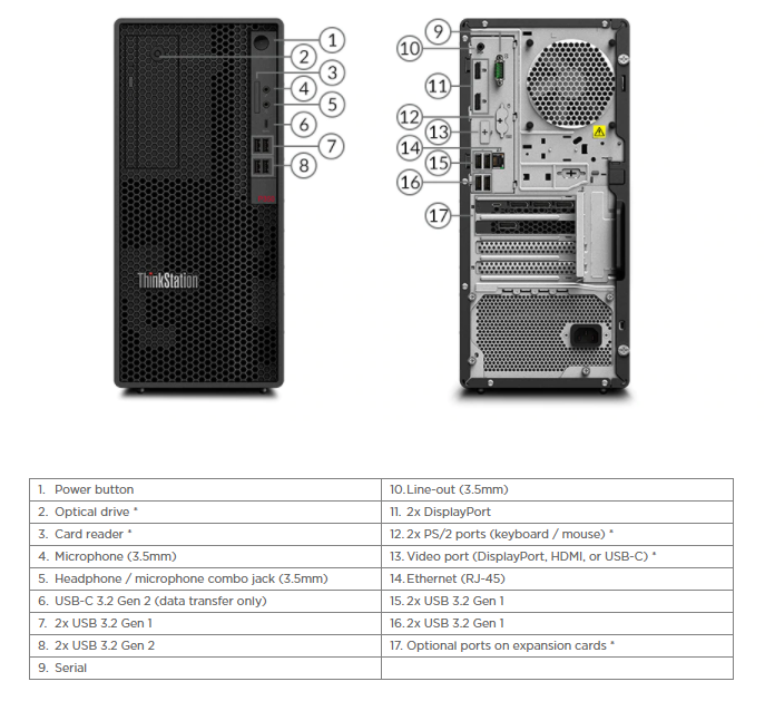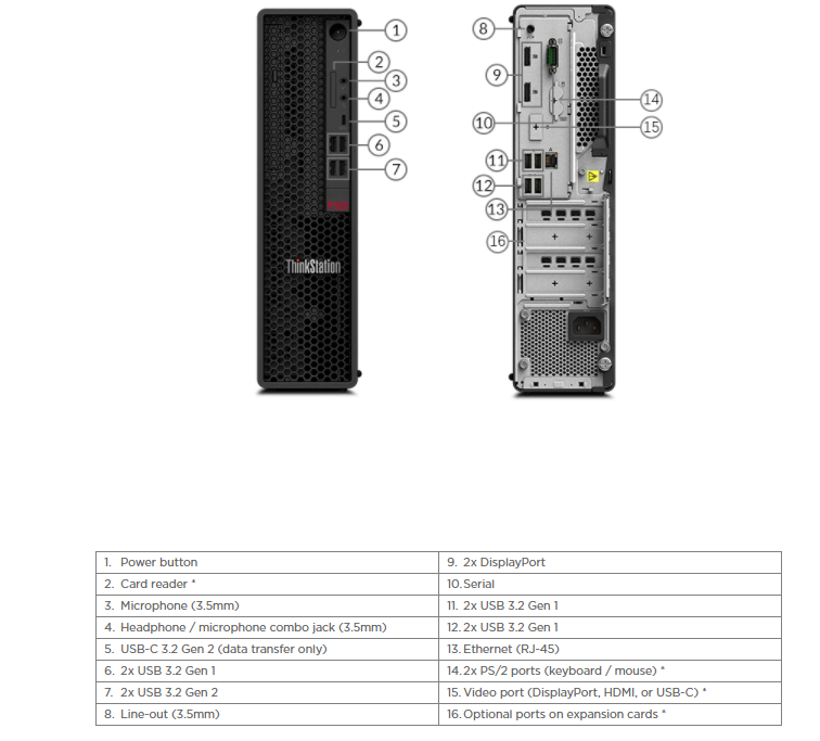 Stacje robocze Lenovo ThinkStation P350 - to nowa generacja komputerów klasy PC dedykowanych do trudniejszych zadań niż klasyczne komputery z rodziny ThinkCentre (ThinkStation oferują większe możliwości konfiguracji / rozbudowy). Dostępne są w obudowach typu Tower (17 litrów; 170 x 315.35 x 376 mm), SFF (8,2 litra; 92.5 x 309.7 x 339.5 mm) oraz Tiny (1 litr; 37 x 182.9 x 179 mm). Za moc obliczeniową odpowiadają procesory Intel Core z 10 i 11. generacji (i3 / i5 / i7 / i9 / Xeon). Za moc obliczeniową opowiadają układy dedykowane firmy NVIDIA Quadro takie jak: Quadro T400, Quadro T600, Quadro T1000, Quadro P1000, Quadro RTX A400 oraz Quadro RTX A5000. Pamięć RAM dostępna jest w zależności od typu obudowy komputera i są to: dla Tiny do 64GB w dwóch kościach SO-DIMM 3200Mhz, dla SFF do 128GB w czterech kościach DIMM 3200Mhz, dla Tower do 128GB w czterech kościach DIMM 3200Mhz. Za wsparcie bezpieczeństwa odpowiadają takie technologie jak Discrete TPM 2.0 (TCG certified), E-lock, Chassis intrusion switch, Power-on password, Administrator password. System operacyjnym jest MS Windows 10 PRO.